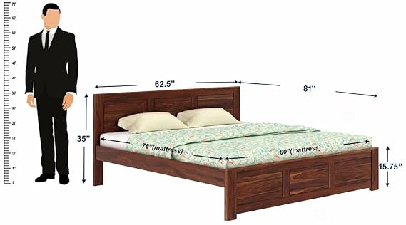 • Product Dimensions : Mattress Size (LxW in Inch):- 78×60 inches, Product Dimensions:- (LxW in Inch) 81×63. Product comes with standard bed height. ( Mattress Not Included )