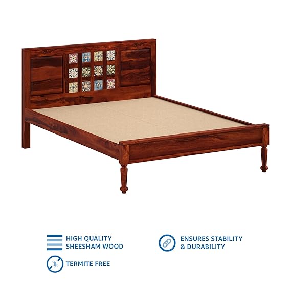 PIPERCRAFT Solid Sheesham Wood Queen-Size Bed, Low Height Without Storage (Honey Finish) ₹36,999 ₹15,999