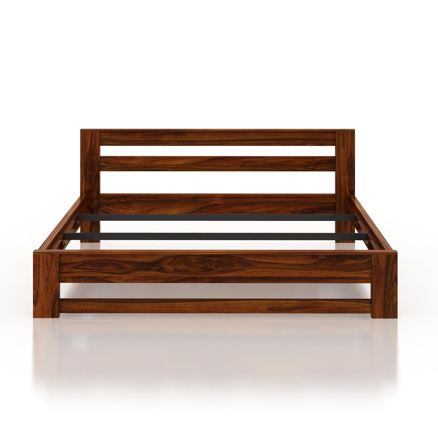 PIPERCRAFT Sheesham Wood Foster Queen Size Bed Without Storage for Bedroom | Wooden Double Bed Cot Palang Furniture for Living Room Home Hotel (Natural Finish)
