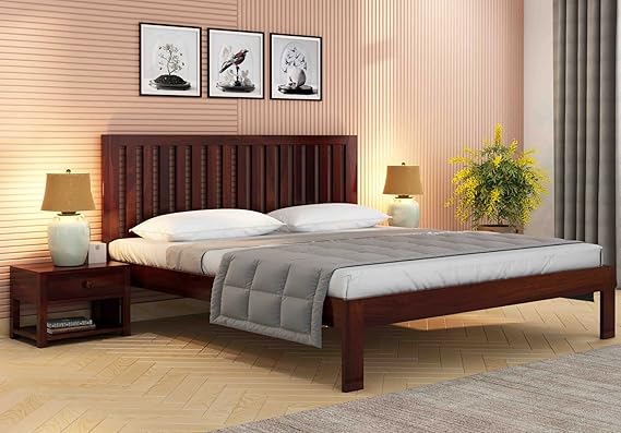 PIPERCRAFT Sheesham Wood Queen Size Bed Without Storage Solid Wooden Queen Size Cot Bed Double Bed Furniture for Bedroom Living Room Home - (Walnut Finish) ₹44,199 ₹18,299