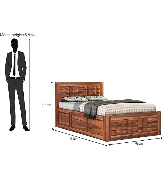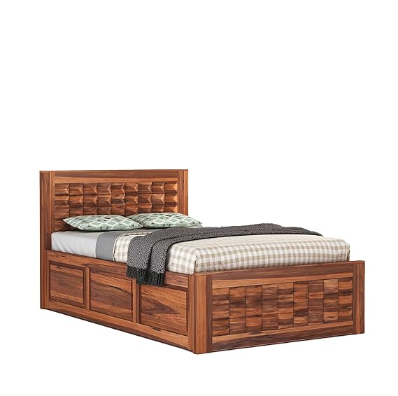 Home Bedroom Single Bed PIPERCRAFT Sheesham Wood Single Size Bed with Box Storage | Solid Wooden Single Size Cot | Single Bed Furniture for Bedroom Living Room Home, Honey Finish