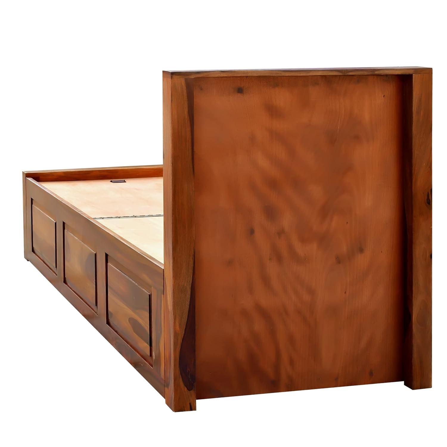 PIPERCRAFT Sheesham Wood Single Size Bed with Box Storage | Solid Wooden Single Size Cot | Single Bed Furniture for Bedroom Living Room Home, Honey Finish