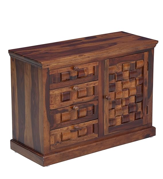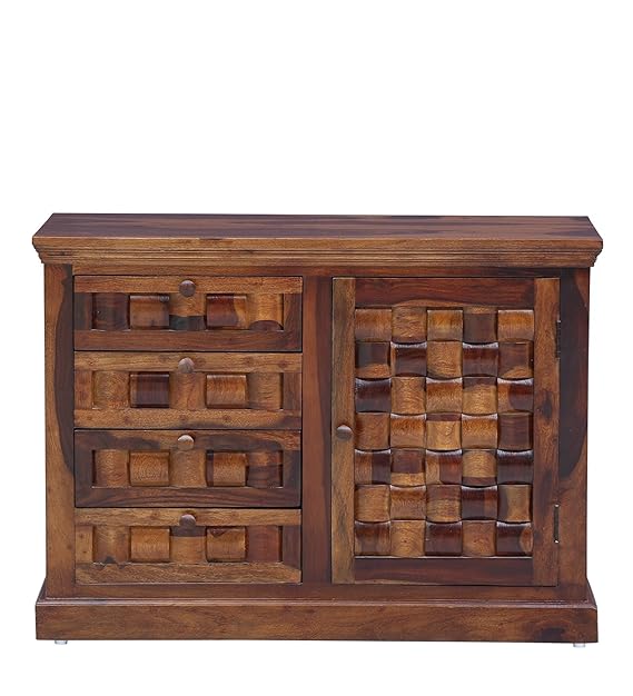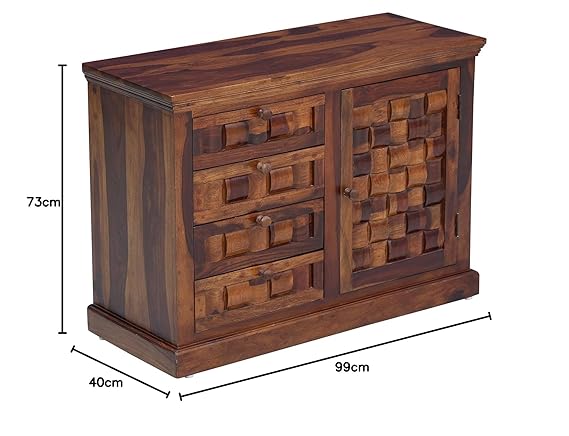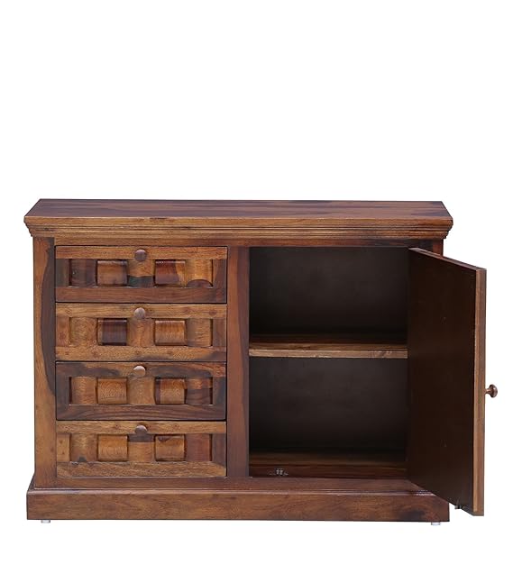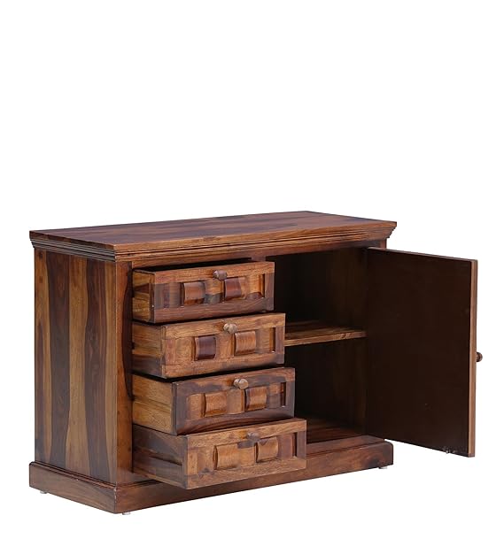 PIPERCRAFT Sideboard with 4 Drawer & 1 Door 2 Self Storage Cabinet for Living Room Bedroom Crockery Cabinet Console Table Already Assembled [Provincial Teak Finish Sheesham Wood]