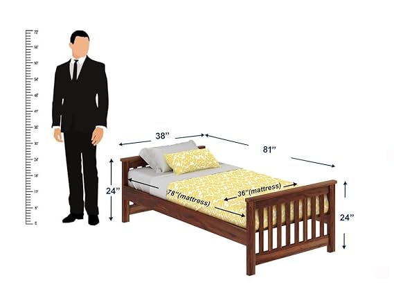 • Product Dimensions : Mattress Size (LxW in Inch):- 78×36 inches, Product Dimensions:- (LxW in Inch) 81×39. Product comes with standard bed height. ( Mattress Not Included )