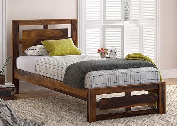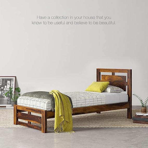 Pipercrafts Baha Sheesham Wood Single Bed In Provincial Teak Finish