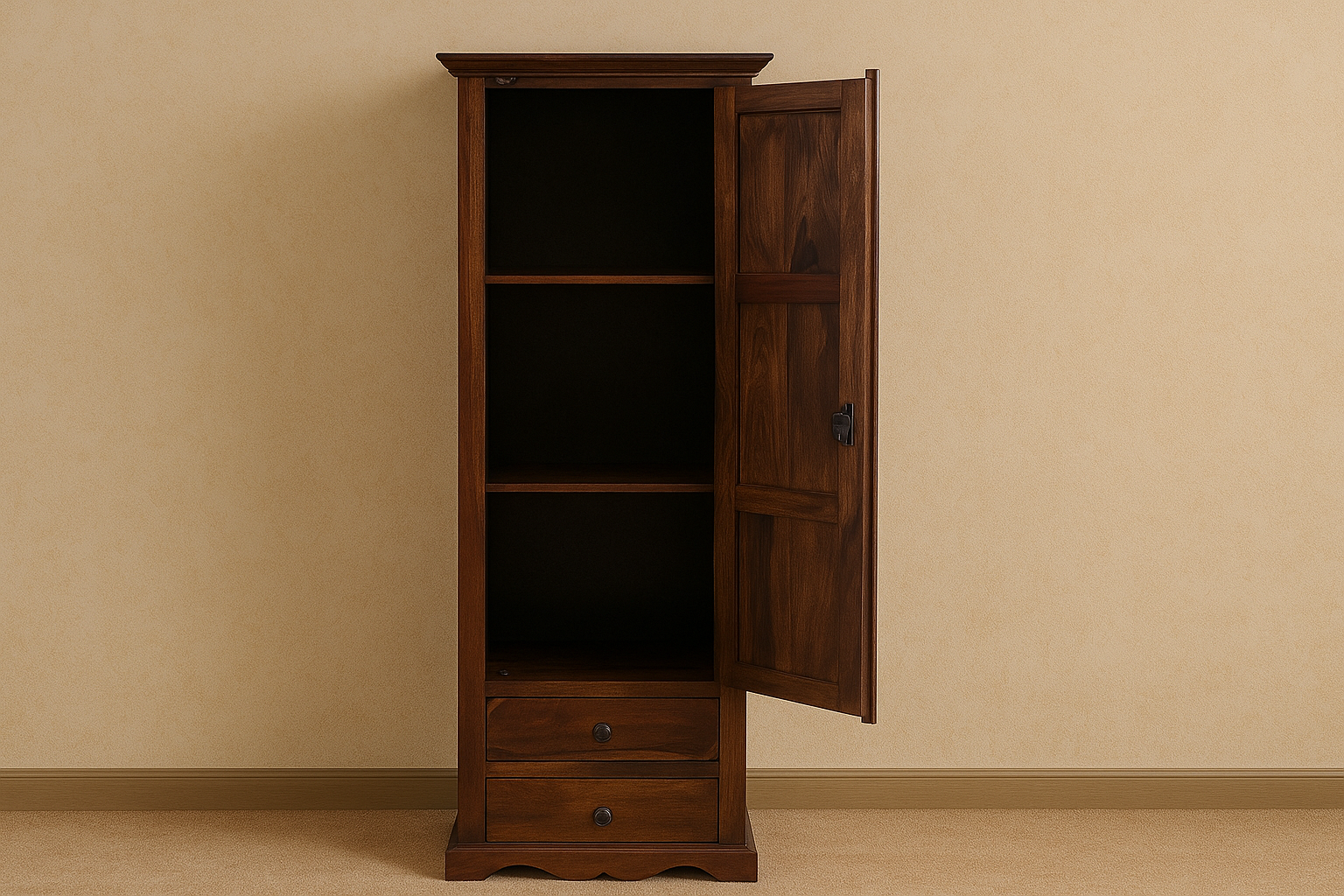 Home Storage wardrobe Pipercrafts Linden Sheesham Solid Wood Wardrobe with 1 Door Storage and 2 Drawers Almari for Bedroom/Living Room Home In Walnut Finish