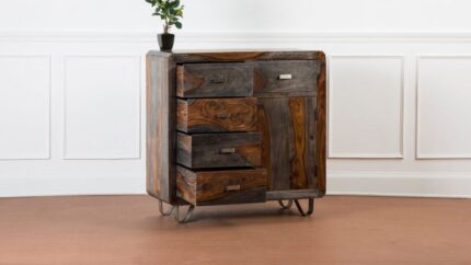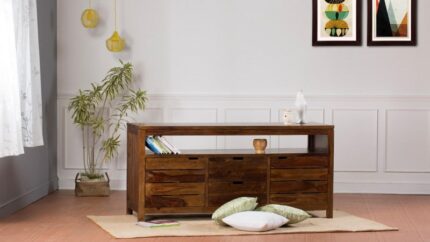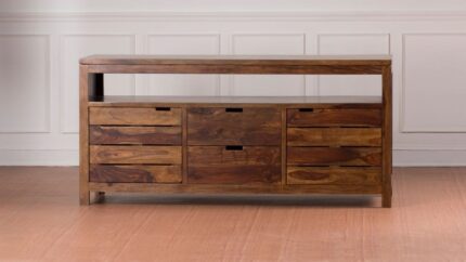 - This furniture unit is crafted from high-quality Sheesham wood.