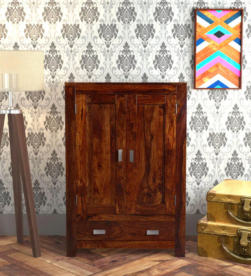 Home Storage wardrobe Pipercrafts Oak Solid Wood Wardrobe In Honey Finish