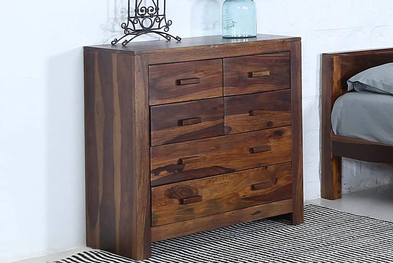 Pipercrafts Olive Solid Sheesham Wood Chest of Drawers In Provincial Teak Finish