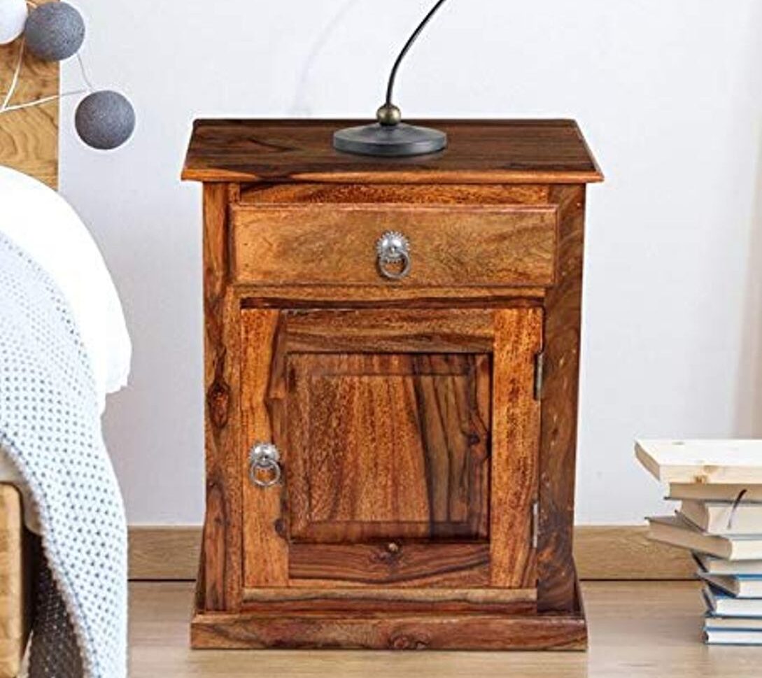 Pipercrafts Sheesham Solid Wood Bedside Table for Bedroom & Living Room In Honey Oak Finish