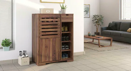 Pipercrafts Sheesham Solid Wood Doors Shoe Cabinet Shoe Rack in Rustic Teak Finish