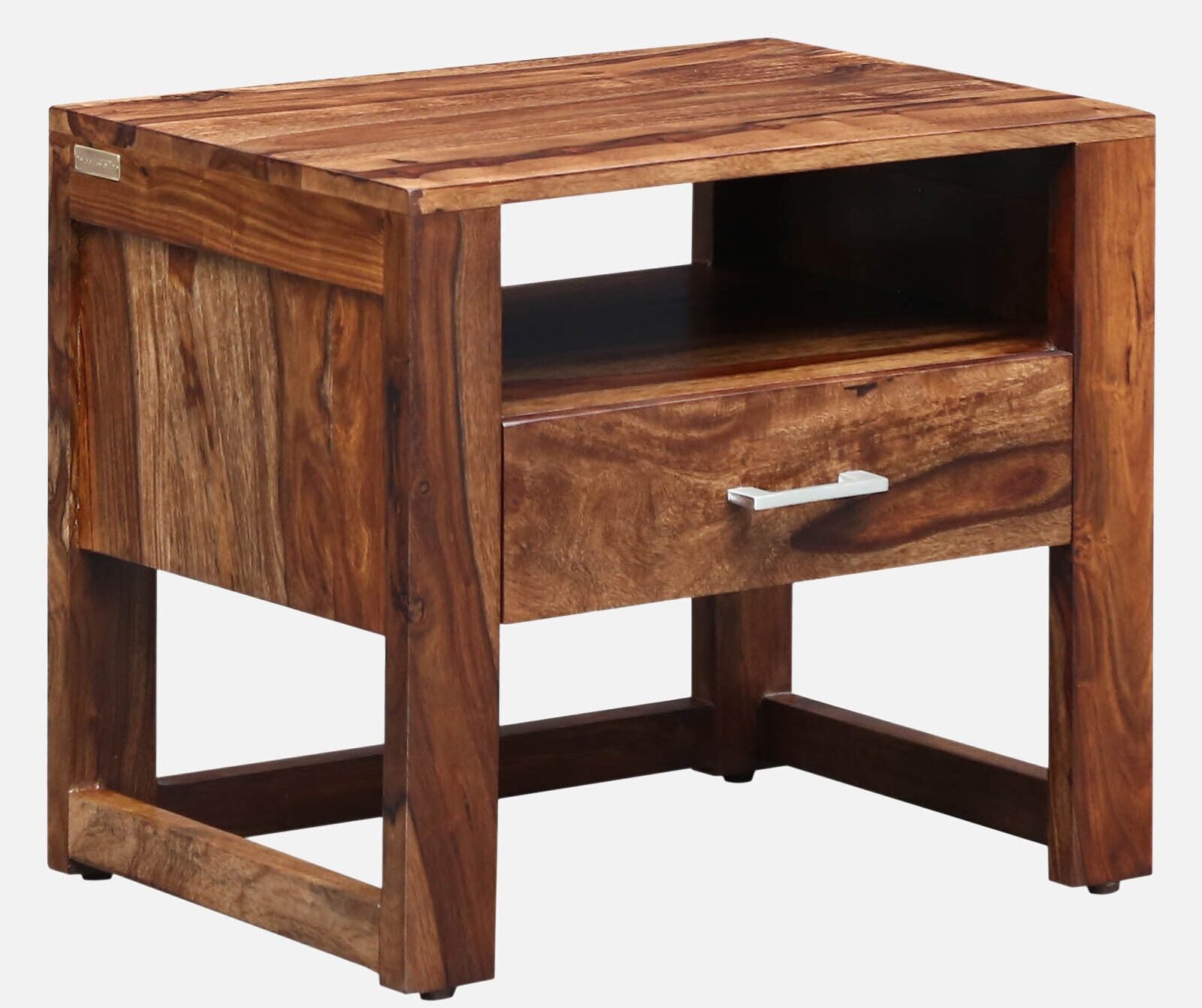 Pipercrafts Sheesham Wood Bedside Table With Drawer In Rustic Teak Finish