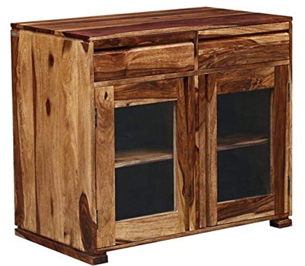 Home Storage SideBoards Pipercrafts Solid Sheesham Wood Free Standing Multipurpose Storage Sideboard Cabinets for Home and Office Teak Finish