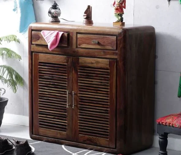 Pipercrafts Sheesham Solid Wood Two Doors Shoe Cabinet Shoe Rack in Rustic Teak Finish ₹23,999 ₹13,799