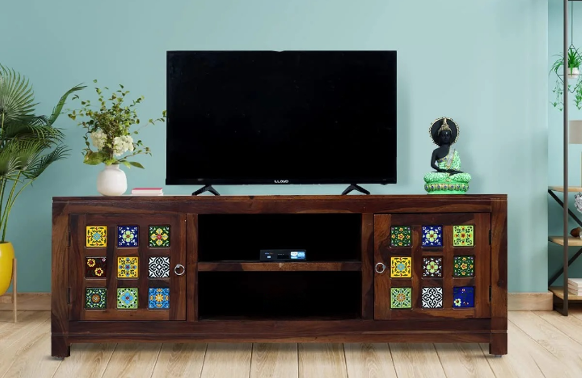Pipercrafts Wooden Solid Wood Entertainment TV Unit Cabinet Brown Finished ₹20,000 ₹13,789