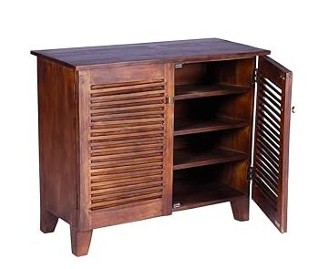Pipercrafts Sheesham Solid Wood Doors Shoe Cabinet Shoe Rack in Rustic Teak Finish